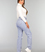 Dieser taillierte Pullover hat einen hohen Rollkragen und einen hohen Stretchanteil. Er ist aus einem gerippten Stoff gefertigt, der ihm ein Streifenmuster verleiht. Der Pullover hat Dreiviertel-Ärmel und sitzt sehr gut.