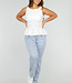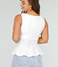 Dieses elegante weiße, ärmellose Oberteil hat ein schmeichelhaftes Schößchen-Design, das die Taille betont und eine feminine Silhouette schafft. Subtile strukturierte Details im Stoff sorgen für einen raffinierten Touch. Der Rundhalsausschnitt und die schmale Passform machen dieses Oberteil vielseitig und eignen sich sowohl für legere als auch für schicke Kombinationen. Perfekt mit Jeans für einen lässigen Look oder mit einem Rock für einen eleganten Look.