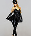 Dieses sexy Bunny-Kostüm ist 5-teilig und aus einem Wet-Look-Stoff gefertigt. Das Oberteil ist trägerlos, aber man kann Schultergurte anbringen (nicht im Lieferumfang enthalten). Es ist etwas länger und unten fällt es schön weit/gefaltet. Die Leggings sind tailliert und haben einen elastischen Bund. Die Maske hat zwei Löcher an den Augen und ein elastisches Band um den Kopf. Mit dabei sind zwei lange Handschuhe und ein Diadem mit Ohren.