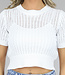 Dieses süße Oberteil hat ein gehäkeltes Design. Das Oberteil hat kurze Puffärmel und ist tailliert geschnitten.