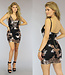 Schlüsselwörter: schwarzes Glitzer-Bodycon-Kleid, Netzkleid mit rosa Pailletten, Pailletten, tailliert, überbackene Details, Spaghetti-Träger, Reißverschluss, V-Ausschnitt