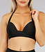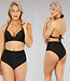 Schlüsselwörter: Bikini zum Kombinieren, schwarzer Bikini mit hoher Taille, Neckholder-Bikini, Plissee-Details, Knopf-Detail, Schleifen-Detail, Basic, vorgeformt, Übergröße