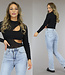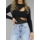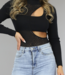 Schwarzer langärmeliger Bodysuit mit Ausschnitt und Muster