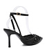 Deze beige hakken hebben een puntige neus en een slanke hoge hak. Het bovenwerk is volledig afgewerkt met kralen, parels en pailletten. De hakken zijn voorzien van een enkelbandje met verstelbare gesp. Het model is open aan de hiel en gesloten aan de voorzijde.