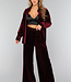 Dieser schöne Zweiteiler ist schön weich, so dass er sich sehr angenehm trägt! Es besteht aus einer Bluse und einer langen Hose. Die Bluse fällt übergroß aus und hat lange Ärmel und einen Kragen. Auf der Vorderseite befindet sich ein Knopfverschluss, der aus sieben Knöpfen besteht. Die Hose hat einen elastischen Bund und ist weit geschnitten.