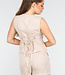 Dieses Set aus beigem Gilet und Shorts in Leinenoptik ist perfekt für jede Gelegenheit. Das Oberteil hat einen V-Ausschnitt und ist asymmetrisch, bestehend aus drei auffälligen Knöpfen auf der Vorderseite, die ihm einen einzigartigen Look verleihen. Das Oberteil hat einen geschmeidig fließenden Schnitt, der Eleganz ausstrahlt. Dank des luftigen Stoffes ist dieses Oberteil ideal für heiße Tage. Am Rücken hat das Oberteil einen Heftverschluss, um die Passform perfekt einzustellen. Die Shorts haben einen elastischen Bund für zusätzlichen Komfort und eine gute Passform. Der Stoff ist nicht dehnbar.