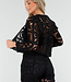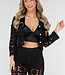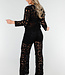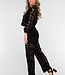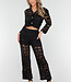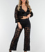 Zweiteilige schwarze Häkelweste und -hose mit Einsatz in der Hose