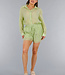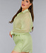 Grünes zweiteiliges Set mit durchsichtiger Bluse und elastischer Short