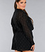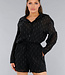 Dieses luftige zweiteilige Set besteht aus einer Bluse und einer Shorts, die aus einem durchsichtigen, leichten Stoff mit einem dezenten eingewebten Muster aus Glitzerfäden gefertigt sind. Die Shorts haben eine zusätzliche Schicht, damit sie nicht durchscheinen. Die Bluse hat einen klassischen Kragen und einen durchgehenden Knopfverschluss auf der Vorderseite, so dass sie sowohl offen als auch geschlossen getragen werden kann. Die langen Ärmel sind mit Manschetten und Knopfverschluss versehen und sorgen für einen eleganten Look. Die Shorts haben einen elastischen Bund mit verstellbarem Kordelzug für einen bequemen Sitz. Der Stoff selbst ist nicht dehnbar.