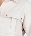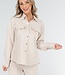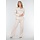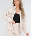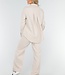 Dieses Set besteht aus einer Bluse und einer passenden Hose mit weitem Bein, beide in einem sanften Beigeton. Die Bluse hat eine gerade Passform, lange Ärmel mit Manschetten und einen klassischen Kragen. Auf der Brust befinden sich zwei große Klappentaschen mit goldfarbenen Knöpfen, die sich im Knopfverschluss auf der Vorderseite wiederfinden. Die Hose hat ein weites Bein, eine hohe Taille und sichtbare Bügelfalten auf der Vorderseite für einen gepflegten Look. Der Stoff ist leicht dehnbar. Das Outfit hier wird mit Turnschuhen für einen lässigen Look kombiniert, kann aber auch schick gestylt werden.