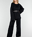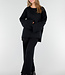 Dieses schwarze zweiteilige Set besteht aus einem locker sitzenden Oberteil und einer passenden geraden Hose. Das Oberteil hat weite Ärmel, einen Rundhalsausschnitt und eine lockere, übergroße Passform. Die Hose hat einen elastischen Bund und einen geraden Schnitt, was für optimalen Tragekomfort sorgt. Der weiche, dehnbare Stoff verleiht dem Set eine bequeme Passform und einen eleganten Look. Das Set wird mit einem passenden Gürtel geliefert, mit dem die Taille betont werden kann, ideal, um dem Look etwas mehr Form zu verleihen. Ein vielseitiges Set, das sowohl leger als auch elegant getragen werden kann.